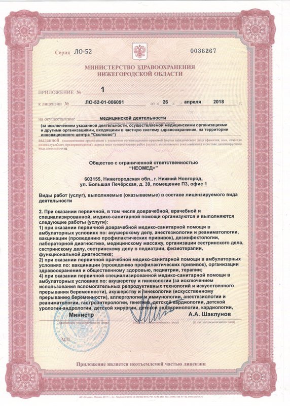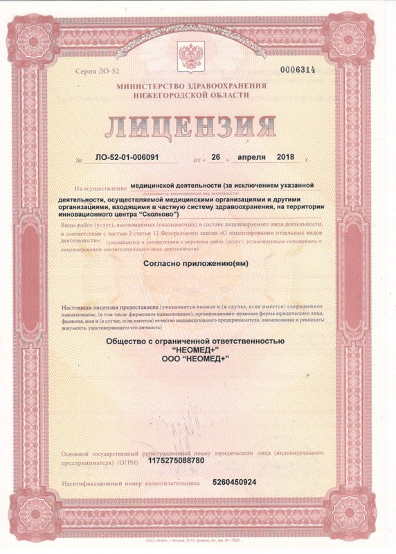 Медицинский центр Неомед - это учреждение широкого профиля, предлагающее специально подобранный комплекс услуг для каждого клиента. Работа клиники организована с учетом максимального комфорта для посетителей. Техническое оснащение кабинетов позволяет провести диагностические исследования организма пациента для составления программы лечения и профилактических мероприятий. В клинике работают отделения анестезиологии, общей терапии, кардиологии, ревматологии, гастроэнтерологии, пульмонологии, аллергологии, иммунологии, нефрологии, неврологии, эндокринологии, дерматологии, гинекологии, акушерства, психотерапии, офтальмологии, оториноларингологии, педиатрии, логопедии, ортопедии. Наши врачи имеют профильное медицинское образование и с пониманием отнесутся к вашим проблемам. Доверяя свое лечение нам, вы можете быть уверены в результате.